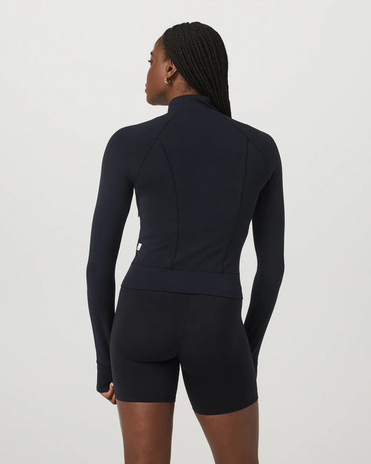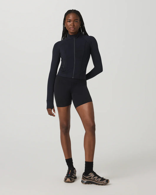 The buttery-soft Vuori BlissBlend Form™ layer your fitness routine has been waiting for. Our women's Vuori AllTheForm™ Fitness Jacket is an easy addition to your workout wardrobe, with flattering front and back seaming details. Zippered pockets let you stash your keys and cards for those post-run iced coffee stops.